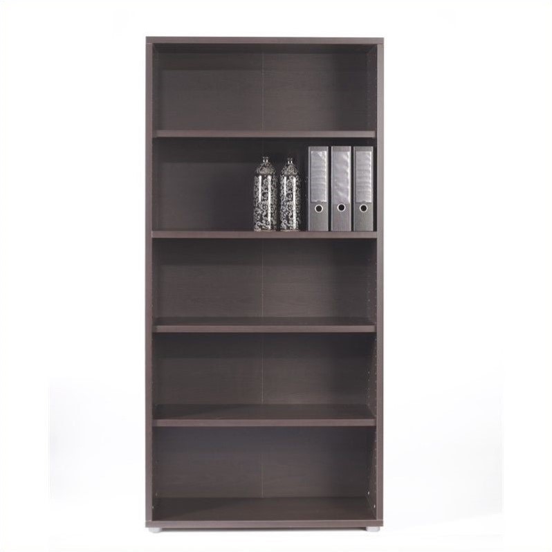 A sleek, modern bookshelf with a dark wood finish is against a white background. The bookshelf has five shelves, and on the top shelf, there are two water bottles and three binders. The middle shelf is empty, and the bottom shelf is also empty. | Pierce 5 Shelf Bookcase in Coffee | 01c006b8c3f998551d115bc9bacbc295fb75e5ac1554a8e139636fec97fe47d9 | 001229701279 | 0 | 0 | 44 | 6 | 0 | 0 | |