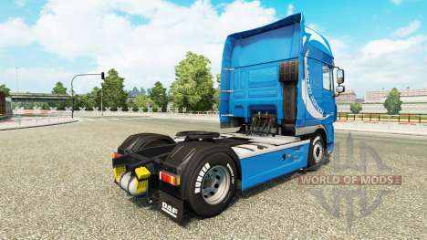 A blue semi-truck with a black trailer is parked on the side of a road. The truck has a large blue cab with a black grille and a white logo on the side. The trailer has a black bed with a white logo on the side. The road is surrounded by a grassy area with trees and a fence. There is a traffic light showing green on th... | Limited Edition skin for DAF truck for Euro Truck Simulator 2 | 68acf4c5797e3860f9764c9ae9e6b5b4781fa0b5e50bce9a05250d8e7d74ebb9 | 001229701401 | 0 | 0 | 85 | 11 | 0 | 0 | |