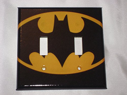 A black and gold double-sided switch plate with a batman logo design. The plate is mounted on a white wall and has two white toggle switches. | BATMAN BAT SYMBOL DC COMICS- DOUBLE Light Switch Plate / Cover (Switch Symbol) | 79c7f3bd7d73cb3b80e7d251999d164673e3e5a331c82a28ed140dc741280e60 | 001229701495 | 0 | 0 | 26 | 13 | 0 | 0 | |