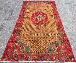 A large, ornate rug with a central medallion and intricate patterns is laid out on a concrete floor. The rug features a rich color palette with shades of red, gold, and green, and is adorned with floral and geometric motifs. | Handsome Mid-20th C. Authentic Handmade Vintage Persian Senneh | dc8f068b482c6a496340ca21aff4bffec9121e2b83fc897405233c5c72132ab8 | 001229701365 | 0 | 0 | 40 | 8 | 0 | 0 | |
