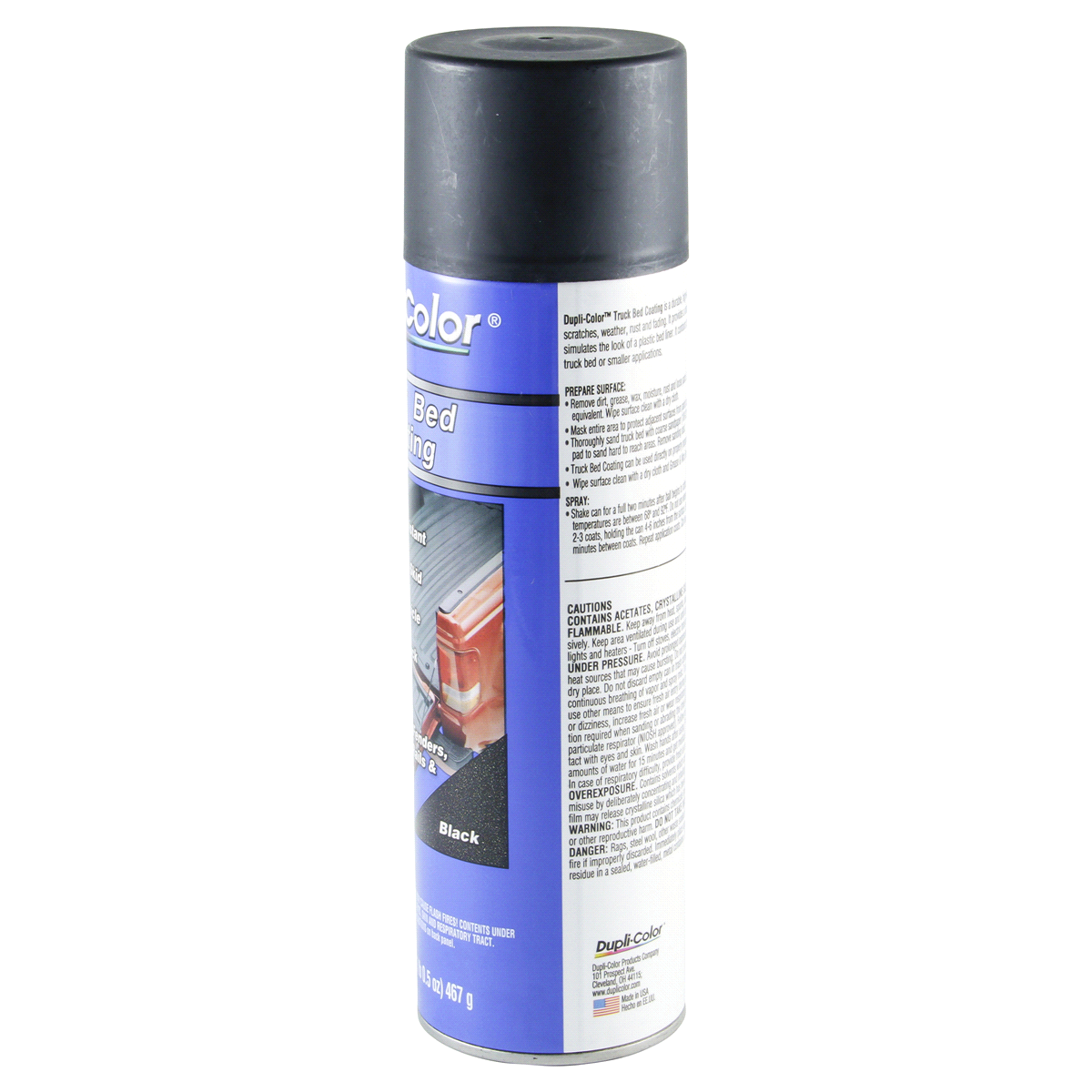A blue aerosol can with a black cap is displayed against a white background. The can is labeled with the brand name 'COLOR' and the product name 'Spray Paint'. The label also includes a warning message and a barcode. The can appears to be new and unused. | slide 3 of 4, Dupli-Color TR250 Black Truck Bed Coating Aerosol, | 1821944e6ba17520aa9caa98b5bdf8a2f58fbd109193c26f77174159fcb1160c | 001229701735 | 0 | 0 | 47 | 11 | 0 | 0 | |
