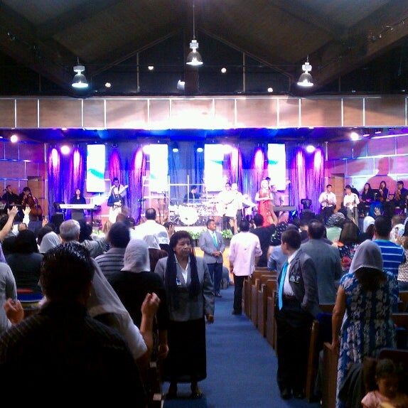 A lively church gathering with a diverse group of people standing and sitting in a large room. The room is adorned with multiple TVs displaying images, and the atmosphere is filled with music and singing. The congregation is dressed in various styles, with some wearing traditional attire and others in modern clothing. ... | Photo taken at ELIM Central Los Angeles by Juan R. on 7/24/2013 | abf23f4e4e02da7156eb33de9746306bdc6a20ccd05633129c14ec8e428ae8a0 | 001229701679 | 0 | 0 | 91 | 12 | 0 | 0 | |