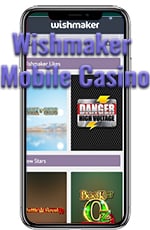 The second image is a close-up of a smartphone screen displaying the 'Wishmaker Mobile Casino' app. The screen is filled with various game icons and promotional text, including 'Danger Rock Video' and 'Beast Quest'. The app's logo is visible at the top of the screen, and the overall design is colorful and eye-catching. | Wishmaker mobile casino | ef964939627dd386c9937fa871b7e5861a2a5838655debf84ab42bf10716c1dd | 001229701870 | 0 | 0 | 53 | 3 | 0 | 0 | |