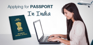 A woman is sitting at a desk with a laptop in front of her, typing. The laptop screen displays a passport application form. The woman is wearing a beige top and has long black hair. To her right, there is a passport with the word 'APPLYING' at the top and 'IN INDIA' at the bottom. The passport has a green cover with a ... | how to apply for passport online | e1e1a81e20f4620b1d27e1f1ab353731a05124b82b4d9f938e0b14a89e193bb6 | 001229701908 | 0 | 0 | 79 | 6 | 0 | 0 | |