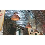 The first image shows an interior view of a room with a high ceiling and a series of hanging copper-colored pendant lights. The ceiling has a metallic finish, and the walls are made of brick. There is a window on the left side of the room, and a sign with a logo is visible on the right side. The lighting in the room is... | Rockfon - Rockfon\xc2\xae Traditions\xe2\x84\xa2 Embossed Metal Cornices | 588ca54ea4570a8b5cf63f6d323be2bd047f0a8a53896a3d07ee9a5af3771466 | 001229701891 | 0 | 0 | 69 | 7 | 0 | 0 | |