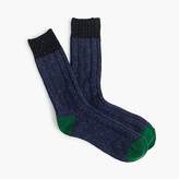 A pair of dark blue socks with a green stripe at the top and a small green patch on the toe. | J.Crew Donegal wool-blend cable knit socks | 715d60840adb1eaf2a7217e60d7bd5df1942b244866d9fa13cab929fdeac4c01 | 001229702387 | 0 | 0 | 21 | 6 | 0 | 0 | |