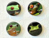A collection of four frog-themed magnets are arranged on a white wall with a floral pattern. Each magnet has a different frog design, with varying colors and expressions. The top left magnet shows a green frog with red eyes and a yellowish-green background. The top right magnet features a green frog with red eyes and a... | Magnets Set of 4 Frogs Buy 3 Get 1 Free 443M | f8d6bd2ea40f91325451e3c85ed5a40b4f3656150a0b56a832a52ff0e80308b2 | 001229702366 | 0 | 0 | 88 | 11 | 0 | 0 | |