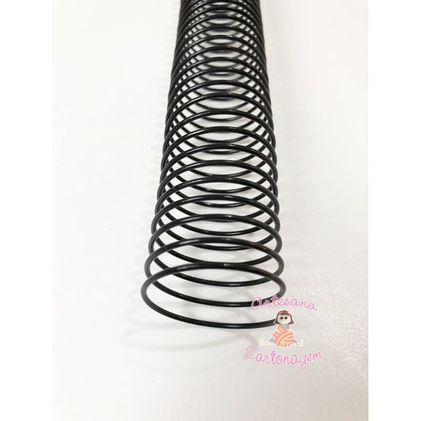 A close-up image of a black spring coiled on a white background. The spring is tightly coiled and appears to be made of metal. There is a small logo with the text 'Cartoagem' and a stylized image of a person in the bottom right corner. | ESPIRAL DE A\xc3\x87O 3/4 MM \xe2\x80\x93 1 UNIDADE | 23e73571a4ad860b490a014de369c77da4c6f3f443ef418fd1d80e97096b61c1 | 001229702940 | 0 | 0 | 45 | 8 | 0 | 0 | |