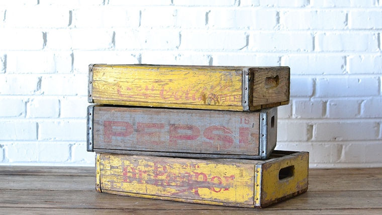 A stack of three wooden crates with faded yellow paint, each bearing the word 'PEPSI' in red letters. The crates are placed on a wooden surface against a white brick wall. | Picture of a Soda Crate | ae89850dd23b1d0259a6ebe689d86fbb10ce6a2f59f1cf7435c97aa069adaff3 | 001229703261 | 0 | 0 | 31 | 5 | 0 | 0 | |