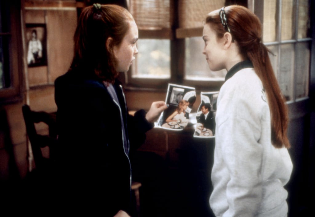Two young girls are standing in a room with wooden walls and a window. One girl is wearing a dark blue jacket and has red hair tied back, while the other girl is wearing a white jacket and has long red hair. They are both looking at a photo in the girl's hand. The room has a vintage feel with a wooden chair and a frame... | The Parent Trap Camp Movies Popsugar Entertainment Photo 5 | f6047ff771d53099387b2d62a8c99a007d113ea36ee46e20c5d1a0447e5d502e | 001229703219 | 0 | 0 | 70 | 9 | 0 | 0 | |