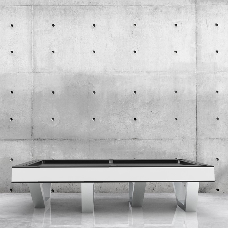 A sleek, modern white pool table with a smooth surface and a minimalist design is set against a concrete wall with evenly spaced holes. | Geometrix Billiard Table Pool Table | c49ed8ce5dd96b6c47da3f2bb63d4120707439988e169936ffd53ed46a355620 | 001229704361 | 0 | 0 | 24 | 5 | 0 | 0 | |