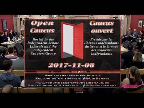 The image is a close-up of a television screen displaying a news broadcast. The broadcast features a red and white graphic with the words 'OPEN CAUCUS OUVRE' in bold black letters. Below the graphic, there is text that reads 'HOSTED BY THE INDEPENDENT SENATE LIBERAL AND THE INDEPENDENT SENATE GROUP DE SENATE LE GROUPE ... | Open Caucus on Robotics and AI: Social and Economic Impacts -- November 8, 2017 (Floor feed) | e05a828a34618e4883159467debe15666ff38c21c6bcaded0ed47e054bcc2c06 | 001229704381 | 0 | 0 | 85 | 16 | 0 | 0 | |