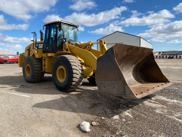 A yellow bulldozer is parked on a dirt field with a clear blue sky above. The bulldozer has a large, flat blade attached to its front, and it is positioned on the left side of the image. There is a small white rock on the ground in front of the bulldozer. In the background, there is a building and a red car parked to t... | 2008 Caterpillar 966H High Lift Wheel Loader | 1cecffa5beace9cf189ea34b3a9a5474cc8161fc4c085adfa3009c02e8dfe3e3 | 001229704529 | 0 | 0 | 66 | 7 | 0 | 0 | |