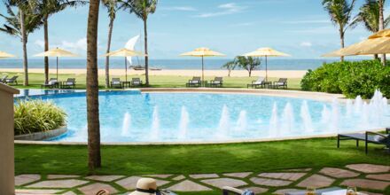 A serene beachside resort with a large swimming pool surrounded by palm trees, sun loungers, and umbrellas. The pool is adorned with multiple fountains, and the area is lush with greenery. In the background, there is a calm sea and a clear sky. | Allasalue, Hotelli Heritance Negombo, Sri Lanka. | 13beed427ef69ef8d9ce453e9851626a2dcda90bd42cc8c144d552e856cd96a9 | 001229704520 | 0 | 0 | 43 | 6 | 0 | 0 | |