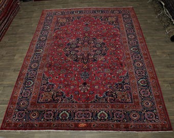A large, ornate Persian rug with intricate patterns and a rich red color is laid out on a wooden floor. The rug is detailed with a central medallion surrounded by a variety of geometric and floral designs, and it has a fringe along the bottom edge. | Overwhelming Antique Signed Palace Mashad Persian Rug Oriental Area Carpet 11X16 | 3b3c0d33bd47fb60279e7b7ab550e2fb83a7d667ef1bc9a5b5b59390afbca9fb | 001229704907 | 0 | 0 | 46 | 11 | 0 | 0 | |
