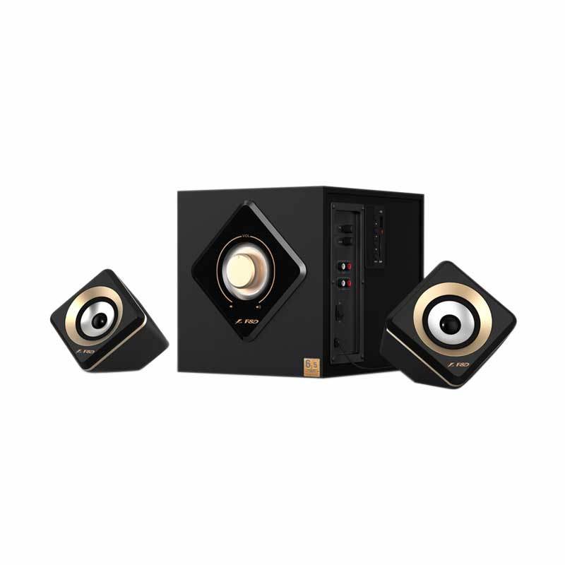 A sleek black computer tower with a gold trim is surrounded by three speakers, two on the left and one on the right. The speakers have a modern design with a circular grill and a gold accent on the base. The computer tower is placed on a white background. | Fenda A330U Speaker 2.1 - Black | c59a9b225c0d9520ef825484a7fa9a7e238ff7beb8c5ff4adb7d6411d74b7971 | 001229705803 | 0 | 0 | 49 | 6 | 0 | 0 | |