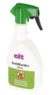 A green spray bottle with a black nozzle is shown against a white background. The label on the bottle is white with the text 'CIT' in large letters at the top, followed by 'ANTIMARDER SPRAY' in smaller letters below. There is a red and white warning symbol on the label, and the bottle appears to be full. | Spray anti-martre ² | 914a634906cd6d17ddcff8dfa399e9731294251dc6921c908e666832b9d1e3a9 | 001229705947 | 0 | 0 | 57 | 3 | 0 | 0 | |