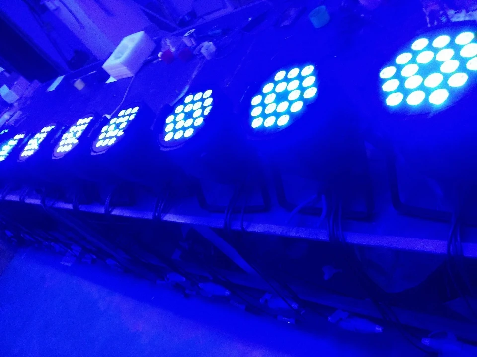 A row of blue LED lights is lined up on a surface, with each light emitting a bright blue glow. The lights are evenly spaced and appear to be connected by cables. The surface is dark, and the lights cast a blue hue over the area. | discount projector dmx Die-casting | b853122aa35245a9404d26040c05c6a26a6245237b3efdd6712bdcc250ee2a48 | 001229706450 | 0 | 0 | 46 | 4 | 0 | 0 |