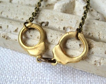 A pair of gold handcuffs with a chain and a clasp is displayed on a white cloth with a stone background. | handcuff necklace brass handcuffs nancy grace necklace | 8927e8f6d65b72c528b94654f9c8fd2ba9aeda4a87975ed483daeb386eb9e163 | 001229706553 | 0 | 0 | 21 | 7 | 0 | 0 | |