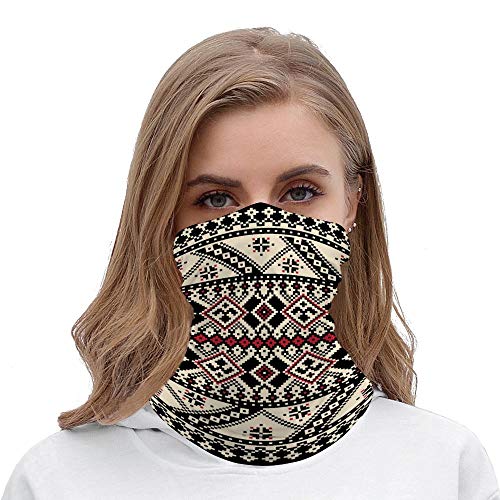 A woman with long blonde hair is wearing a patterned face mask. The mask has a geometric design with red, black, and white colors. The woman is wearing a white shirt and is standing against a white background. | Traditional Ukrainian Folk Headband Neck Gaiter Face Cover Magic Rave Face Bandanas Balaclava Face Mask | e939ce783367d67d79e292e723376e610201f81c4606fb47f67068b2fbf81640 | 001229706504 | 0 | 0 | 38 | 15 | 0 | 0 | |