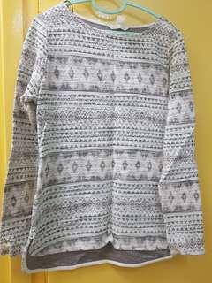 A grey patterned shirt with a geometric design is hanging on a hanger against a yellow background. | H&M Knitted Top | 7c1744bb904bc1d918c85187432aa9efa2ea9d1b2ed0c9d5f4db393118f99375 | 001229706558 | 0 | 0 | 17 | 3 | 0 | 0 | |