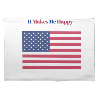 A white towel with a blue border and the phrase 'It Makes Me Happy' written in red and blue letters at the top. The towel features a large American flag design in the center, with red stripes and white stars on a blue field. | It Makes Me happy- American flag Placemat | 9e19ff08d6d64bfe8a89d6f6db00bb937b897a333bf9d9a485ccadda7ef2c29b | 001229706458 | 0 | 0 | 44 | 7 | 0 | 0 | |
