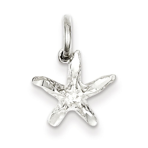 A silver star-shaped pendant with a textured surface and a diamond-like center is displayed against a white background. | Sterling Silver 1/2in Diamond-cut Starfish Charm | 6a47c958a8790df264a2d395121913893d2f92d34346db09e57f424e661cea98 | 001229706456 | 0 | 0 | 18 | 6 | 0 | 0 | |