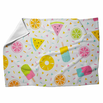 A colorful beach towel with a pattern of various fruits and ice cream cones is displayed. The towel features a predominantly white background with a mix of bright colors including yellow, pink, green, and orange. The fruits include slices of watermelon, strawberries, and oranges, as well as whole lemons and limes. The ... | Colorful Seamless Pattern With Ice Cream Fleece Blanket | 44295103ebd1d7ff512ae9b63c317f486bb54fc8032cf757c023c52c981b384e | 001229706447 | 0 | 0 | 84 | 8 | 0 | 0 | |
