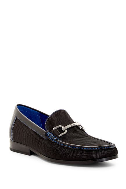 A pair of black and blue loafers with a silver buckle is displayed against a white background. | Image of Donald Pliner Niles Bit Loafer | c9ee7ff99307fd6fc15f8d4b307bebac5a8b2a80e1686535aebbc6183e37b8c3 | 001229707183 | 0 | 0 | 17 | 7 | 0 | 0 | |