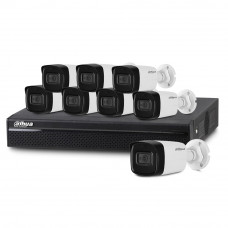 A collection of black and white security cameras is displayed on a black surface. The cameras are arranged in a staggered formation, with some cameras facing forward and others angled to the side. The cameras have a sleek, modern design with a circular lens and a small screen on the front. The brand name 'Dahua' is vis... | Sistem supraveghere exterior basic Dahua DH-B8EXT80-5MP-M, 8 camere, 5 MP, IR 80 m, microfon incorporat | a73635ec0cbb279f72383e17f2d4eaaa758cec45a9732ecf6e185f7fc8f73ee0 | 001229707633 | 0 | 0 | 63 | 15 | 0 | 0 | |