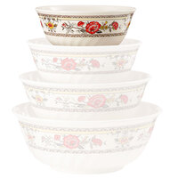 A set of ceramic bowls with a floral pattern is displayed. The bowls are stacked in a gradient order, with the largest bowl at the bottom and the smallest at the top. The largest bowl has a red rose design in the center, while the smaller bowls have a white background with red and pink roses and green leaves. The bowls... | GET M-606-CG Garden 24 oz. Melamine Fluted Bowl - 12/Case | 3eb5f16200c5caa4a0712f718caa22463bf9c5bff00c6ac1cfb77cbd90b52967 | 001229707652 | 0 | 0 | 71 | 10 | 0 | 0 | |