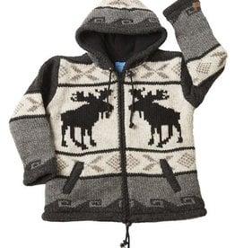 A grey hoodie with a white and black pattern featuring two moose heads facing each other on the front. The hoodie has a hood, two front pockets, and a zipper closure. The sleeves have cuffs, and the bottom hem is ribbed. The moose design is symmetrical, with one moose on the left side and the other on the right side of... | Ark imports Kids Moose Cardigan Natural (L/XL) | 7dd5d49f2f54e31c145d9ec899eb59e30d04fece624c507b94319373158fd33e | 001229707849 | 0 | 0 | 63 | 7 | 0 | 0 | |