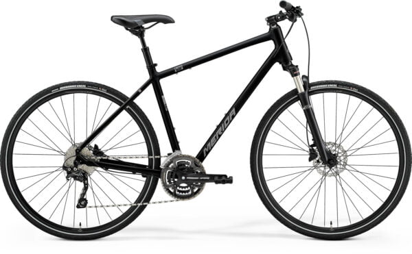 A black mountain bike with a black seat and handlebars is displayed against a white background. The bike has a black frame, black wheels with black spokes, and black tires. The front wheel is on the left side of the image, and the rear wheel is on the right side. The bike has a black chain and black pedals. | Merida Crossway 300 30-v | 51244bb08430b01e9d8a8680ce1a5d8e97323687f77d83bea596db9d7fb5fb9f | 001229707743 | 0 | 0 | 59 | 4 | 0 | 0 | |