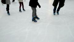 A group of people are ice skating on a smooth, white ice rink. The skaters are wearing various clothing items, including jackets, pants, and gloves. The ice rink is surrounded by a wall, and the skaters are moving in different directions, some closer to the foreground and others further back. The ice has a glossy appea... | Figure skates on the ice, winter sport, entertainment, Stock Footage | 41b5677dbecf0d3eaf4e296a5e5e399b905f41ff625ba6320c764782bffbcf92 | 001229708145 | 0 | 0 | 62 | 10 | 0 | 0 | |