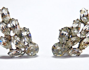 A pair of earrings with a cluster of sparkling crystals in various shapes and sizes. The crystals are predominantly clear with some displaying a hint of blue and green hues. The earrings are set in a silver or white metal, and they are positioned against a white background. | B.A. Ballou & Co. Vintage Clip On Earrings | f7d0eb3fa78a889ddd1c60021cae38cf96645c7ff7871c52bf570112a213de5d | 001229708200 | 0 | 0 | 48 | 8 | 0 | 0 | |