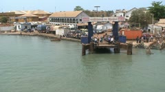 A bustling harbor scene with a variety of vehicles and people. There are several cars and trucks parked near the water, and a crowd of people is gathered on the dock. A large blue and white sign is visible, and there are buildings and trees in the background. The water is calm, and the sky is clear. | Gambia ferry Stock Footage | d2a9dc96c6e3f9b81d3d5893e8824010e913d18836b32987d634e314d206d7ef | 001229708843 | 0 | 0 | 57 | 4 | 0 | 0 | |