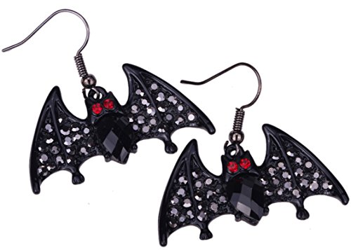 A pair of black bat-shaped earrings with red gemstones and silver accents. | (Angel Jewelry Bat Crystal Dangle Earrings Halloween Party Gifts for Women Teen) | e8338f1d990246d6589ba1c9090fa45b946135954fdc25f517316d1a02ac27f4 | 001229708842 | 0 | 0 | 12 | 12 | 0 | 0 | |