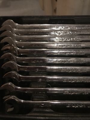 A set of silver wrenches is neatly arranged in a black toolbox. The wrenches are of various sizes and are labeled with their corresponding sizes in millimeters. The toolbox is open, revealing the organized collection of tools. | Snap on metric 10-19mm flank drive plus wrench set for Sale in Silver Spring, MD | f6ef6ab00410743d1ca57a33e525beb8c7237df76e41c142d28aeb2e6dd181c6 | 001229708887 | 0 | 0 | 37 | 15 | 0 | 0 | |