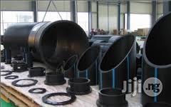 A collection of large, black, cylindrical pipes of various sizes are neatly arranged on a workbench. The pipes are accompanied by a few black rings and a metal ring, all placed on a wooden surface. The background shows a factory setting with a crane and other industrial elements. | Hdpe Pipes, Fittings And Machines In Nigeria | 5e030860cf392bf860a794d96a046a50c1778226fe6fd2248f03eec7a5f7e505 | 001229709060 | 0 | 0 | 48 | 7 | 0 | 0 | |