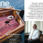 The first image shows a magazine cover with the title 'ONE' and a large image of a wooden boat with a plate and a pair of glasses on it. The text on the cover includes a quote and the words 'Most 30-Minute Mariners' and 'The Low-Cost, High-Performance Plan'. The image is split diagonally, with the left side showing the boat and the right side featuring a man sitting in a chair with a desk in the background. | Maine magazine article | ccad351b20536fe45af5fadcb2bb5eaaab3a079ef9ede2bc13fb2534e7284232 | 001229710245 | 0 | 0 | 77 | 3 | 0 | 0 | |