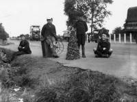 A black and white photograph depicts a group of people standing on a street. There are three individuals in the foreground, with one person sitting on the ground and two others standing. In the background, there is a truck and a car, and a person is visible on the sidewalk. The scene appears to be from an earlier time period, possibly the early 20th century, given the clothing styles and the vintage appearance of the vehicles. | Mitcham 'Remember the Grotto': Children at the roadside | f055b9c37eae49499aa501b465d079fb1b2eb89393d3034fc3efdbb91cd8ac8c | 001229710172 | 0 | 0 | 76 | 8 | 0 | 0 | |