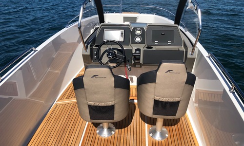 The first image shows the interior of a boat with a focus on the driver's seat and the steering wheel. The seat is beige with black accents and is positioned in the center of the image. The steering wheel is black and is located in front of the seat. The boat's interior is predominantly white, and there are wooden panels on the floor. The image is well-lit, suggesting it is daytime. | Image of Finnmaster Console S6 for sale in United Kingdom for \xc2\xa345,915 United Kingdom | e3a410281280cf5e1f2eebf59d32d5be9773f27a3d0e642ad1a4666c0d0e3bc5 | 001229710513 | 0 | 0 | 71 | 14 | 0 | 0 | |