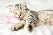 A tabby cat is sleeping on a white blanket with a pink toy next to it. | smiling cat sleep on the bed | ed05dab49495915dcf5573847c9e6d1a60291238b52e12ea961516f4a5c8d467 | 001229710505 | 0 | 0 | 16 | 6 | 0 | 0 | |