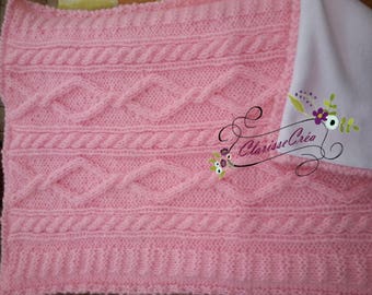 A pink knitted piece with a white border on the right side, featuring a floral design with purple flowers and green leaves. The piece has a textured pattern with a series of interconnected loops. The word 'Charmeur' is embroidered in cursive script on the white border. | little knitted baby blanket and fleece | c105300a4c686a7c262f71ad9cb8b8064b4660a693a8ae6dc810c9ecab2f9ca9 | 001229710626 | 0 | 0 | 46 | 6 | 0 | 0 | |
