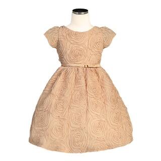 A child's dress with a fitted bodice and a flared skirt, featuring a textured fabric with a rose pattern. The dress has a high neckline, short sleeves, and a belt at the waist. It is displayed on a mannequin with a white background. | Sweet Kids Baby Girls Size 18M Champagne Rosette Mesh Easter Dress | 1a9dfade25bb599171eb014560196d4afcc9900d85827df60f89b1cb0fbec24a | 001229711394 | 0 | 0 | 43 | 11 | 0 | 0 | |