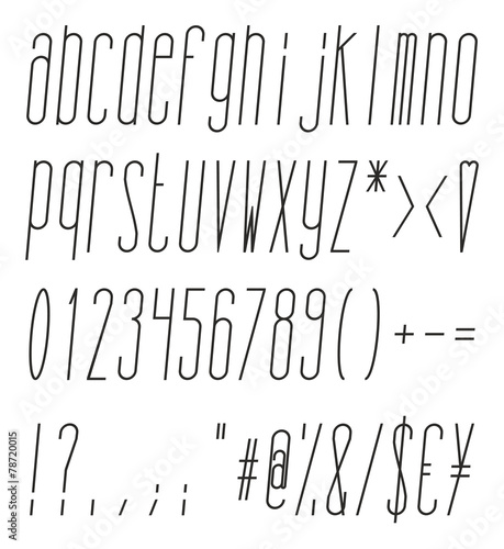 A stylized, monochromatic alphabet and punctuation set with a modern, minimalist design. The letters and symbols are outlined with a thin line, and the set includes uppercase and lowercase letters, numbers, and various punctuation marks. The design is clean and simple, with a focus on the shapes and forms of the characters. | Tall And Skinny Italic Small Alphabet, Numbers And Symbols | 8484f8e1e5507122dbc45ed5be716164d923e750f72290f394ae510dd50c9f32 | 001229711510 | 0 | 0 | 52 | 9 | 0 | 0 | |