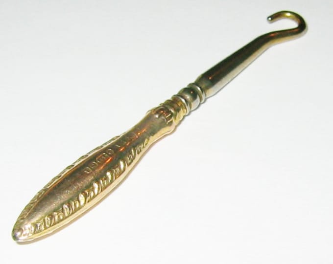 A gold-colored antique pocket knife with intricate designs on the handle and a shiny blade is lying on a white background. | Antique.... 14K Yellow Gold, Button or Shoe Lace Hook. Super Rare... | d99d9eb866cd866db40612d79779ed0821e35a8a57324626c6aae7ddf7cfa078 | 001229711748 | 0 | 0 | 21 | 11 | 0 | 0 | |