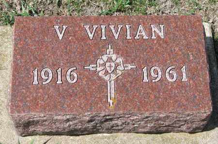 A weathered granite headstone with the name 'V. Vivian' and dates '1916-1965' is set in a grassy field. The headstone features a cross design with a sword-like element in the center. | PETERSON, V. VIVIAN - Union County, South Dakota | V. VIVIAN PETERSON - South Dakota Gravestone Photos | 25a7b4bdc0f71a106677aea1dd7002213d934df448d1b44c795aee0199774d4b | 001229711766 | 0 | 0 | 31 | 17 | 0 | 0 | |