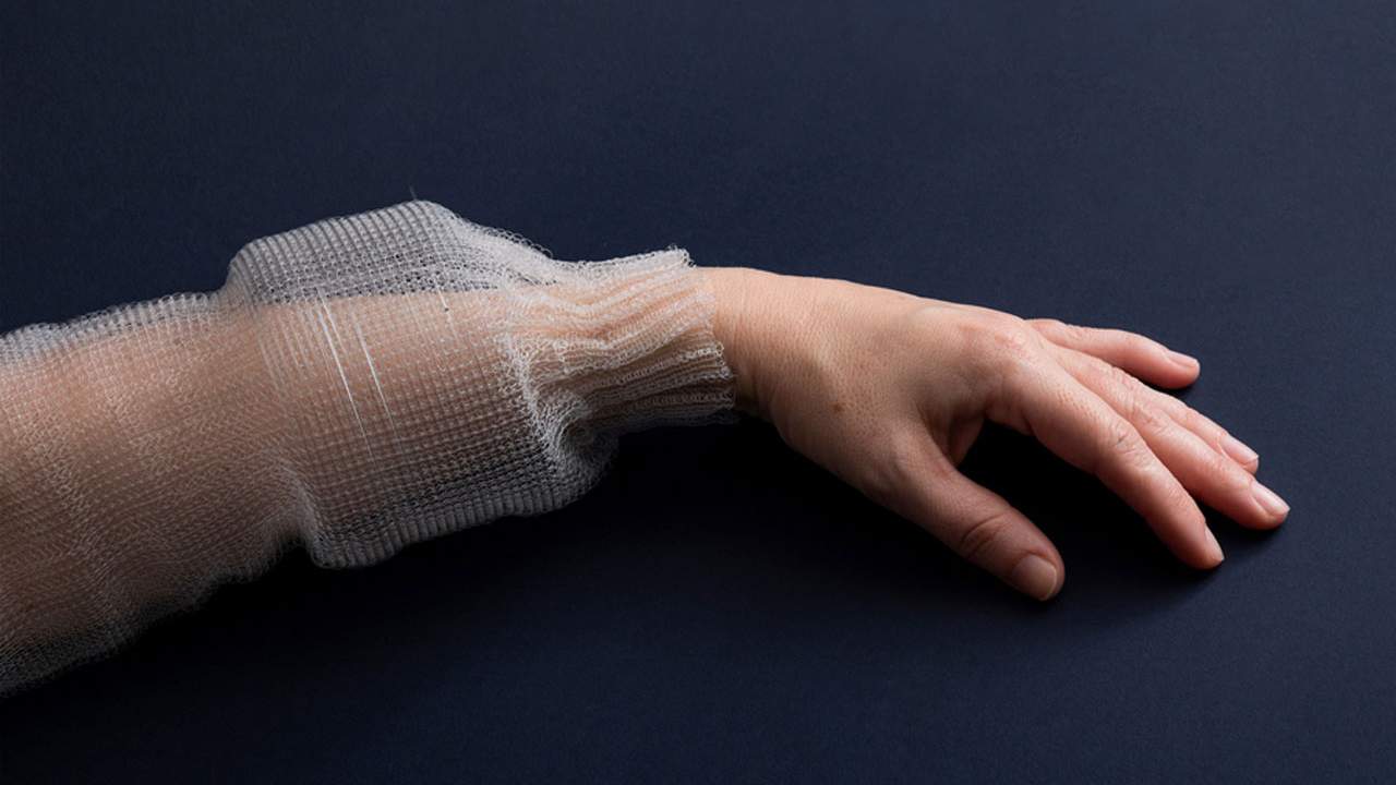 A hand with a white, textured bandage on the wrist and forearm is resting on a blue surface. | MIT programmable fiber can infer physical activity | 76f0ff74b70df406dfb32be7fb16a6f6af075b8d7c96a6afb33d796724ea209f | 001229711834 | 0 | 0 | 18 | 7 | 0 | 0 | |
