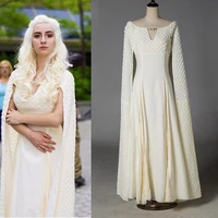 A woman with blonde hair wearing a white dress with a long cape and a high collar stands in front of a mannequin displaying the same dress. | Game of Thrones 5 Costume Cosplay Daenerys Targaryen Qarth Dress Party Halloween Cosplay Costumes | 8c678d0d9519ce91802792f68d85d05bf249daf9b2560e527985d9931af4b611 | 001229711984 | 0 | 0 | 27 | 14 | 0 | 0 | |